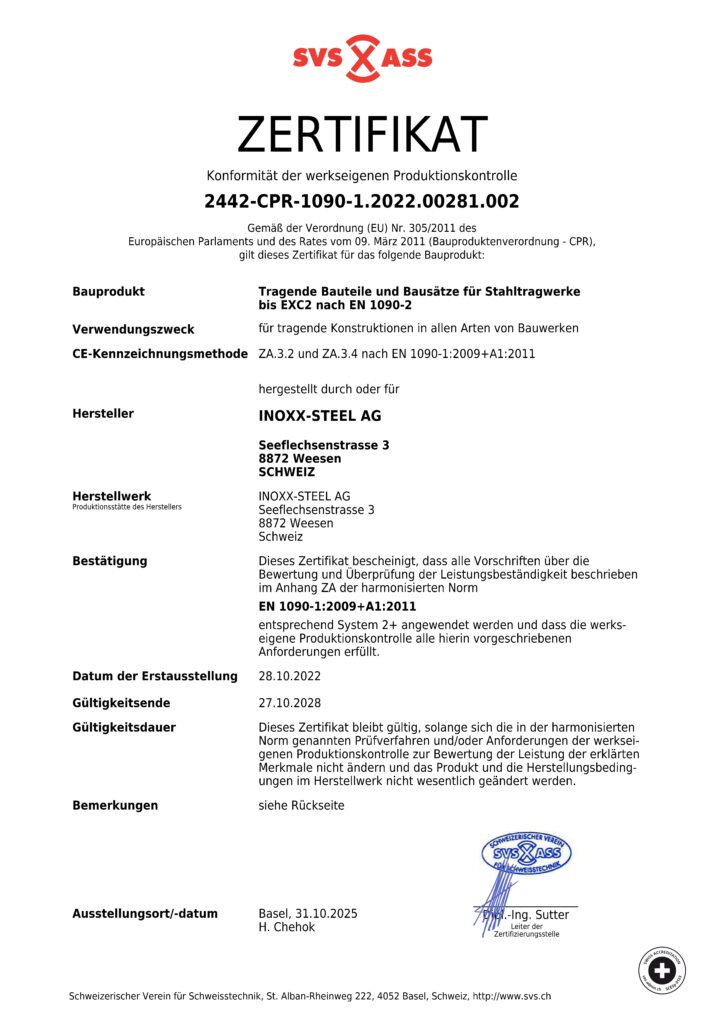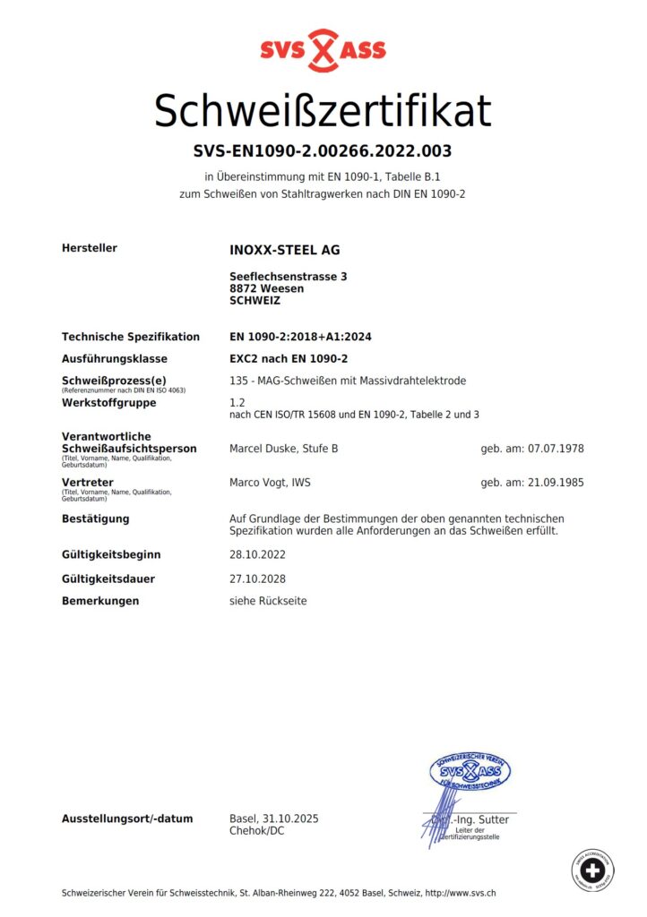 Kompetente Lösungen für Metall- und Stahlbau – INOXX-STEEL AG